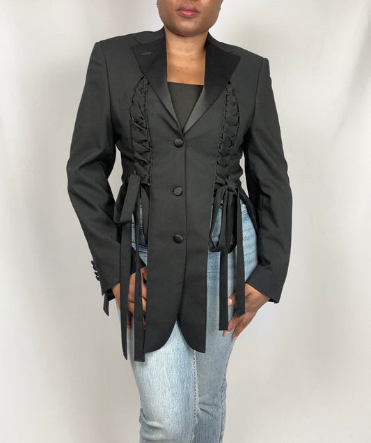 Upcycled cropped blazers that can be paired with mini skirts or purchased...