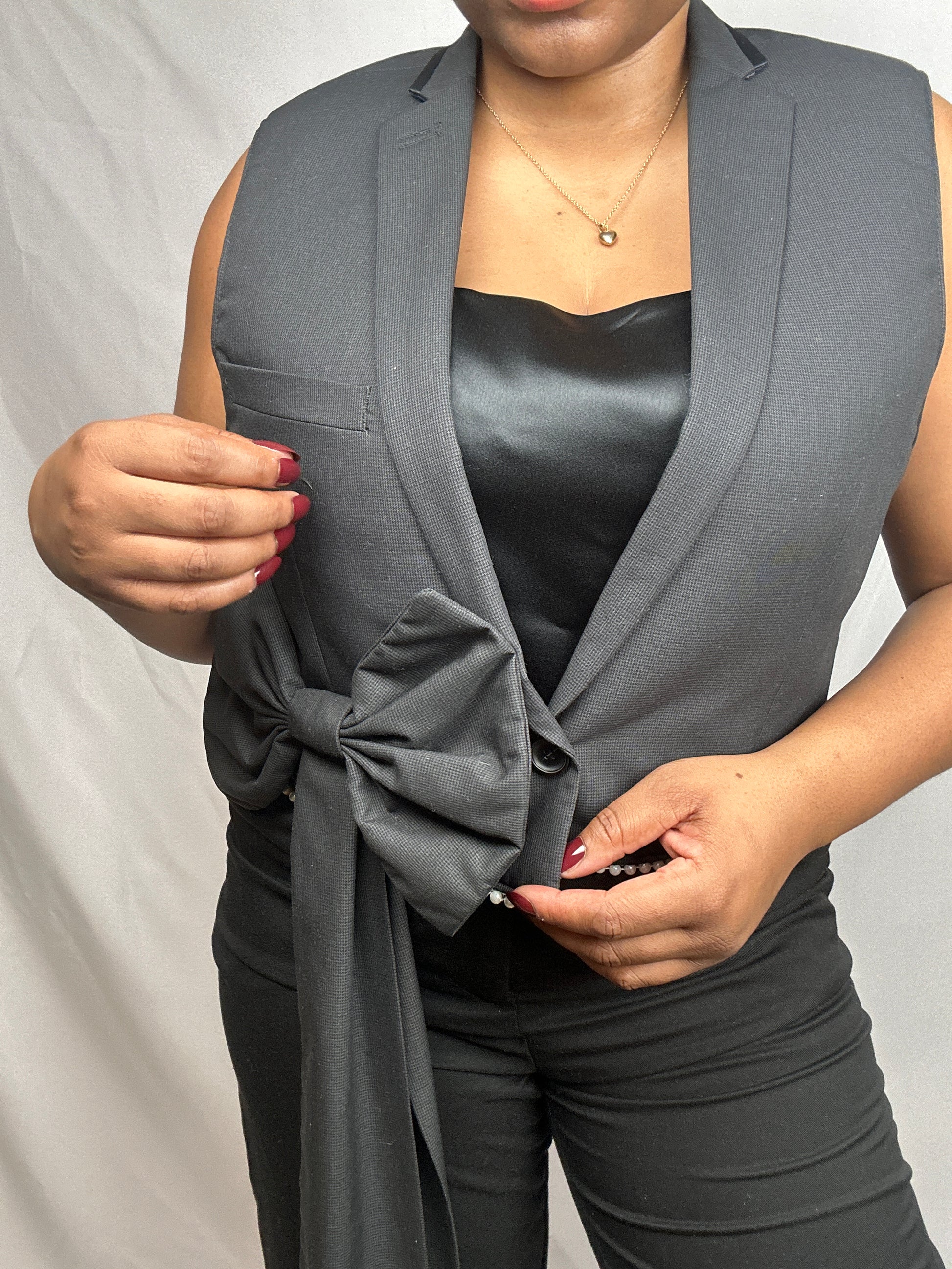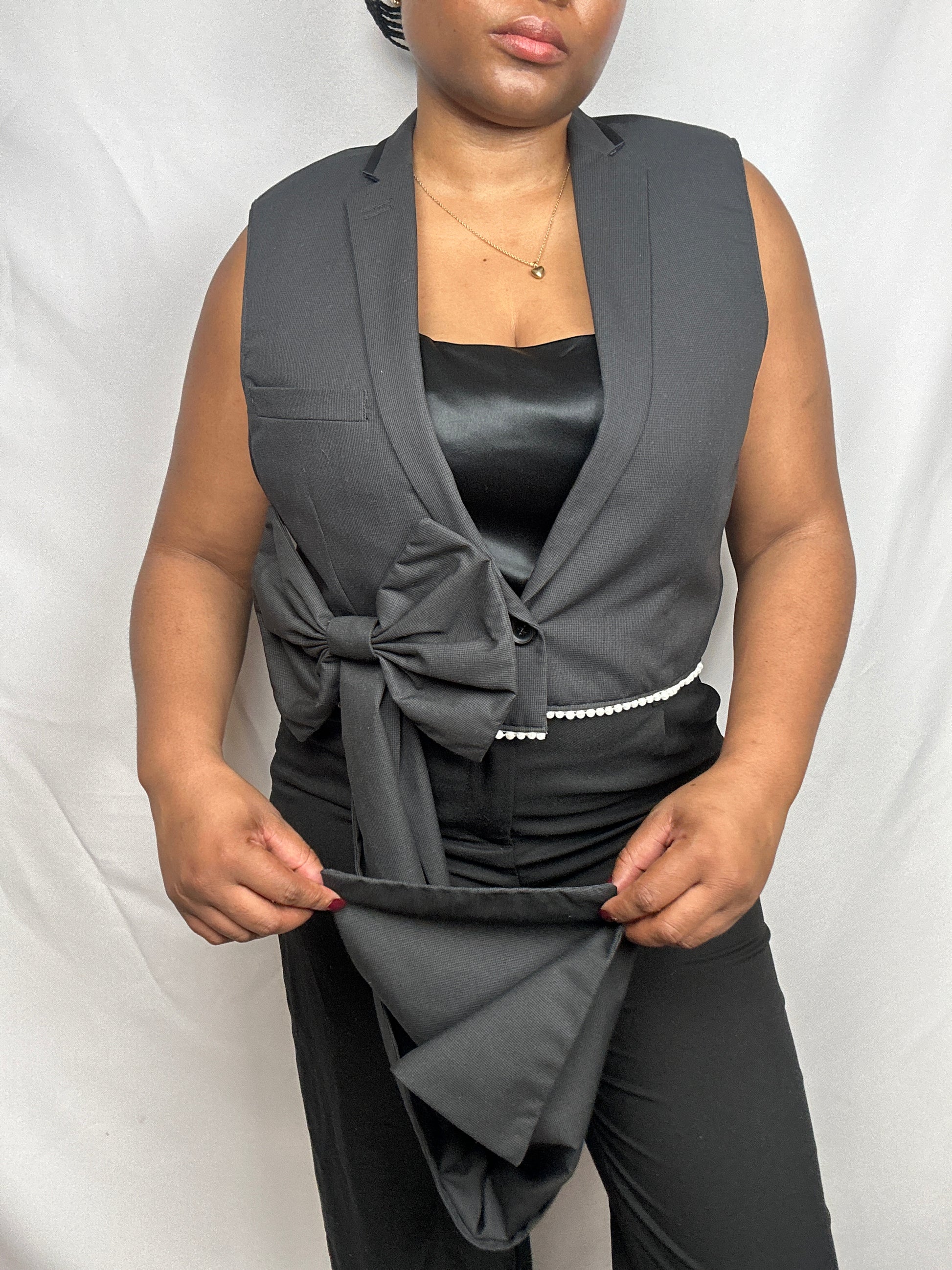 Upcycled waistcoat with a bow